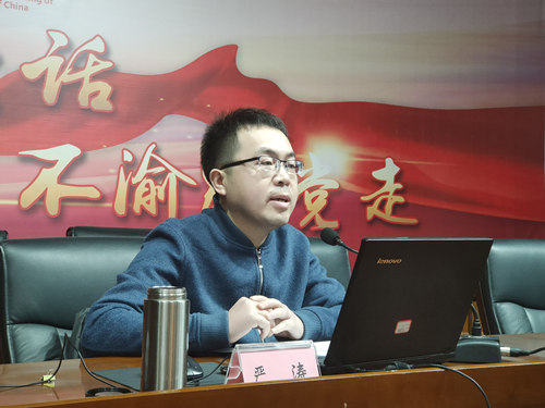 按照上级党委统一安排部署,1月12日下午,内江市委党史学习教育宣讲团成员、川南幼儿师范高等专科学校思政教学部副主任严涛来禁漫 宣讲党的十九届六中全会、省委十一届十次全会和市委八届二次全会精神。公司领导班子成员、党员代表等48人参会。宣讲报告会由党委委员、纪委书记杜科主持。