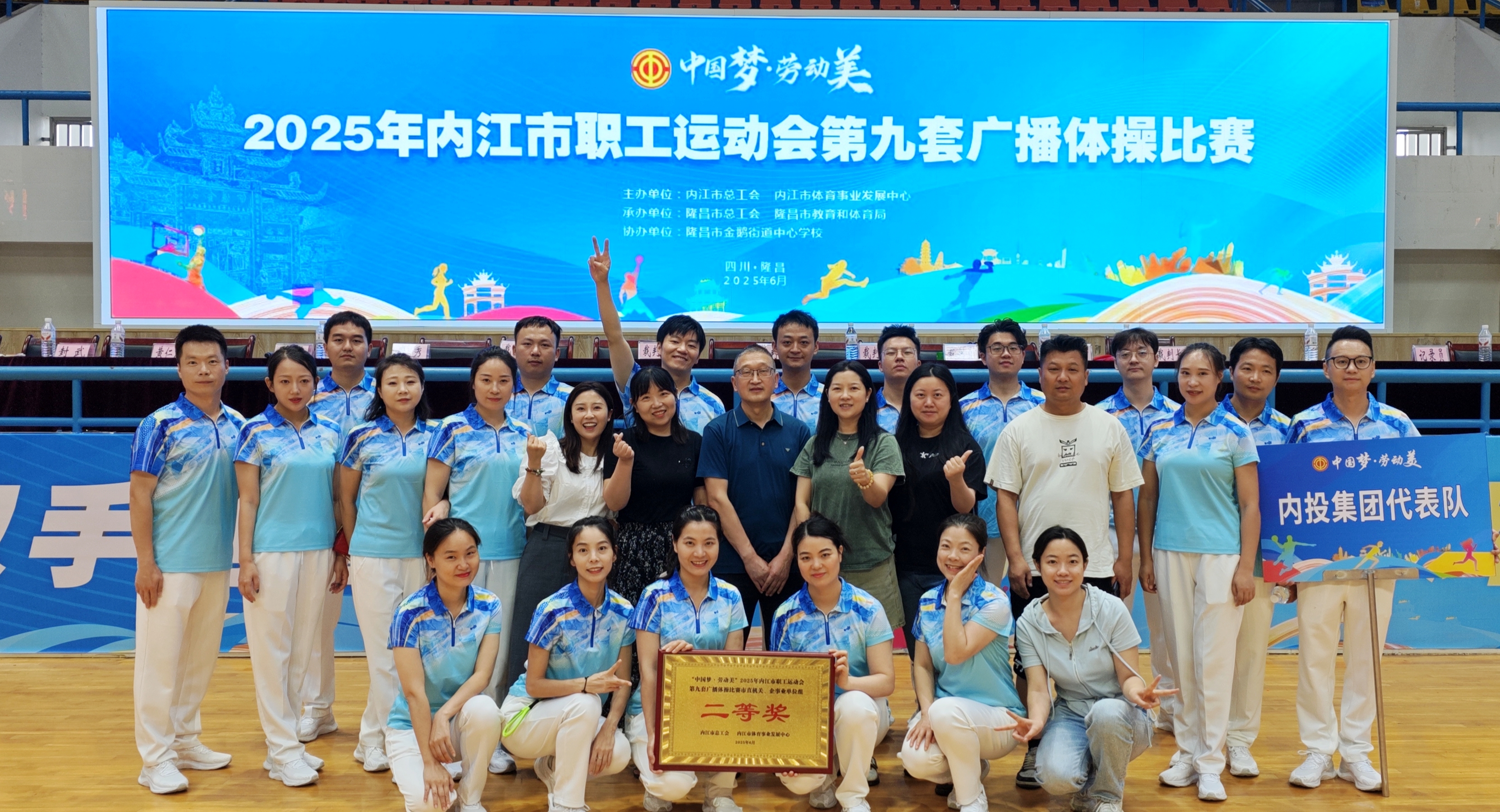 6月21日,2025年内江市职工运动会第九套广播体操比赛在隆昌市体育中心成功举办。由禁漫 和云智科技公司联合组成的内投集团公司代表队凭借优异表现,荣获市直机关、企事业单位组第二名,喜获二等奖。