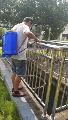 由污水处理厂办公室牵头,在厂区内进行病媒生物防制知识宣传,同时对厂区食堂、死角、提升泵等重点防制位置进行检查,并按照要求在综合楼、食堂、值班站点等放置粘鼠板、灭鼠器、投放鼠药、发放灭害灵等,安排专人对重点区域病虫害进行药物喷杀,督促厂内各岗位工作人员做好辖区内卫生工作。