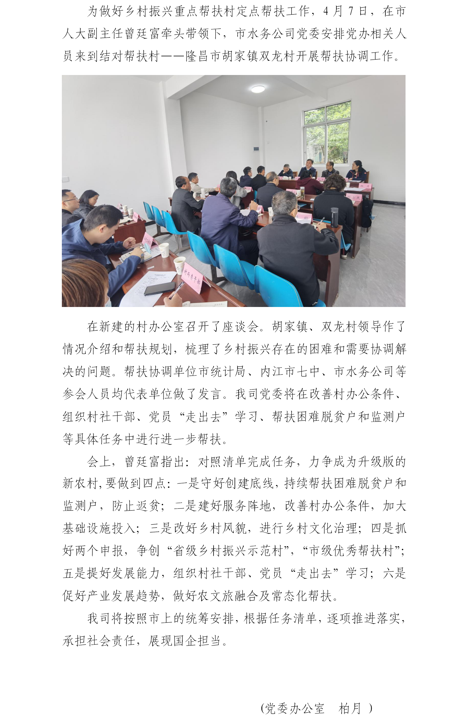 禁漫 到隆昌市胡家镇双龙村开展帮扶协调工作