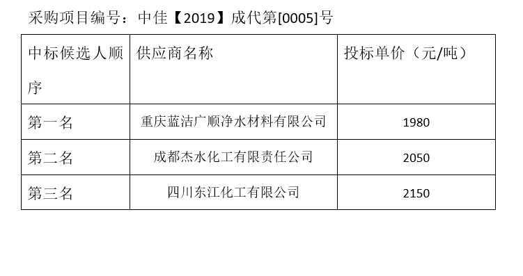 内江市污水处理有限责任公司碳源补充剂和辅助消毒剂招标项目(第1包)评标结果公示