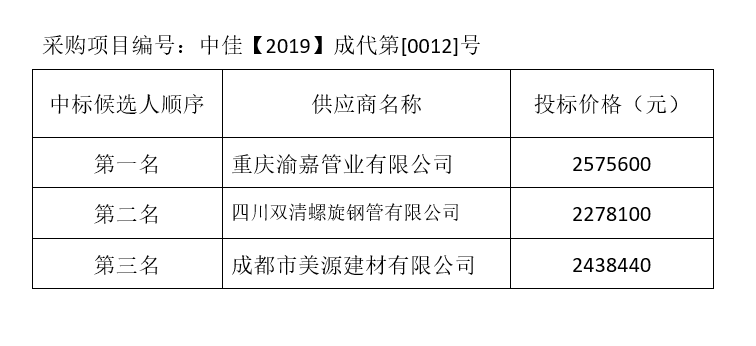 禁漫 螺旋钢管管材及管件采购项目评标结果公示