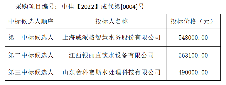 禁漫 东湖御景小区集中式管道直饮水成套设备及附件采购(含安装)项目评标结果公示