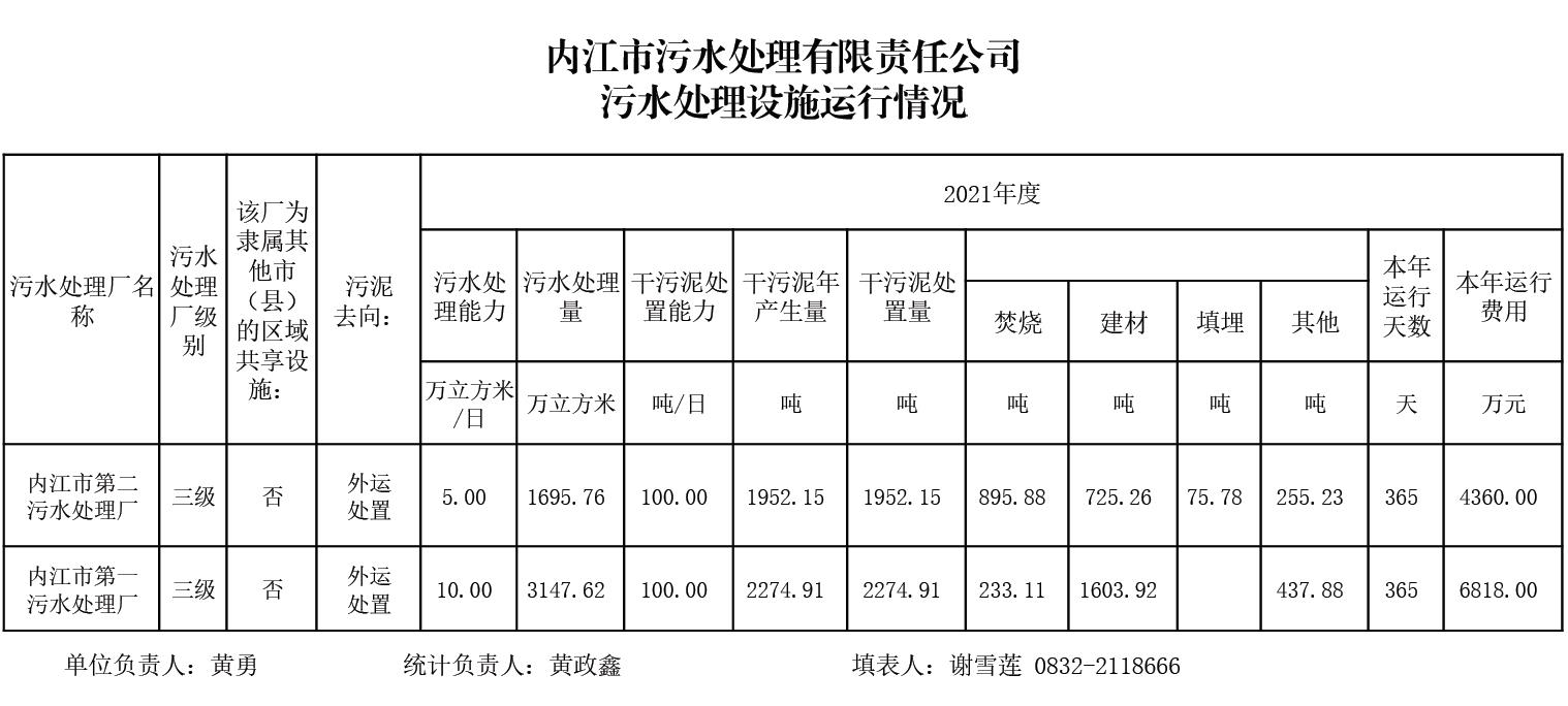 内江市污水处理有限责任公司污水处理设施运行情况