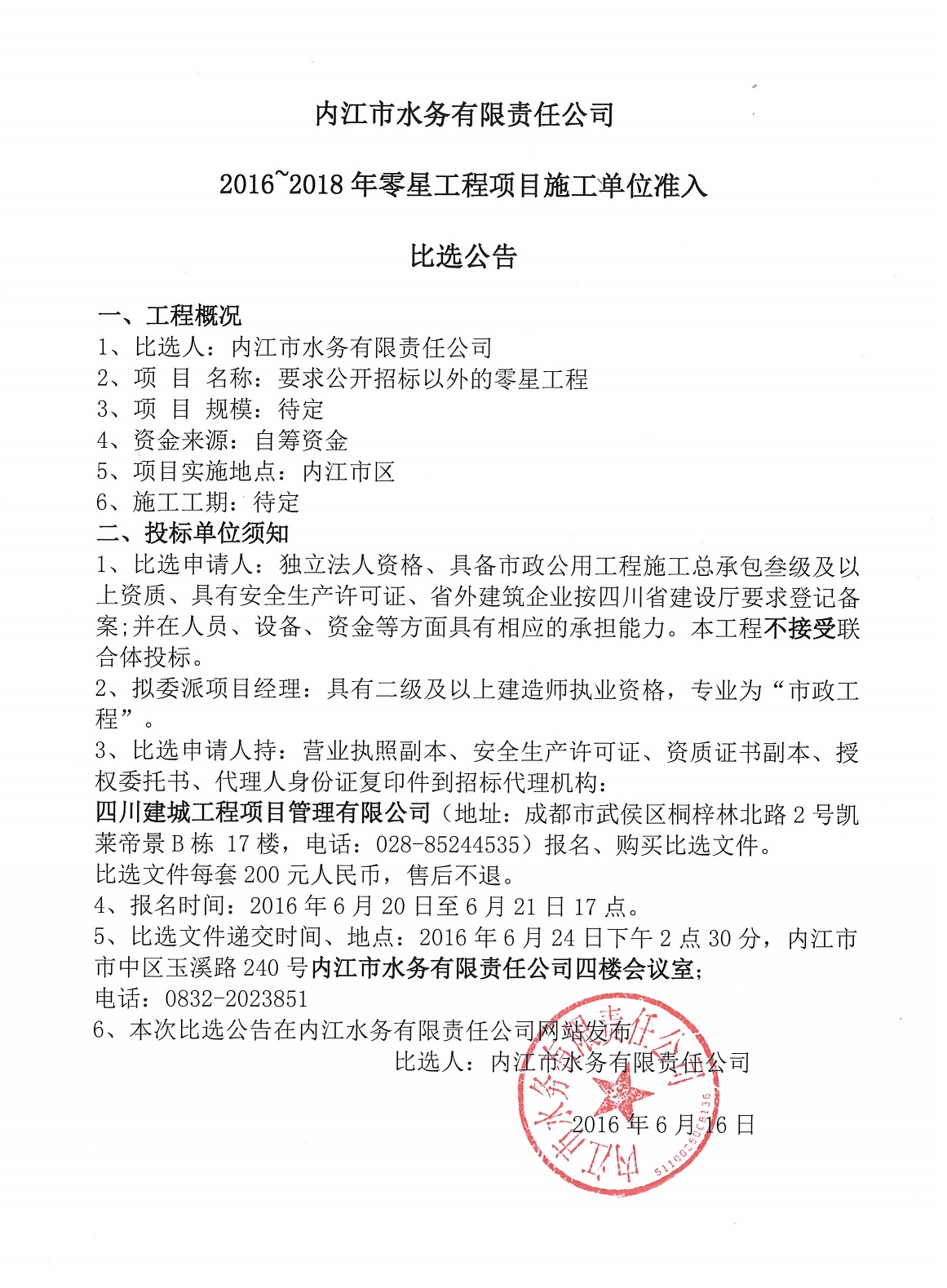 禁漫 2016~2018年零星工程项目施工单位准入比选公告