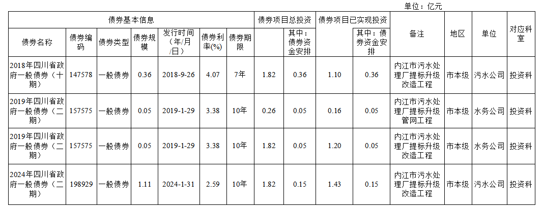 截至2024年末新增地方政府一般债券情况表