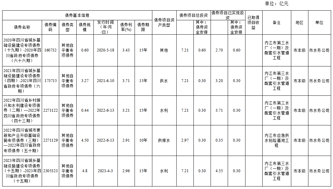 截至2024年末新增地方政府专项债券情况表