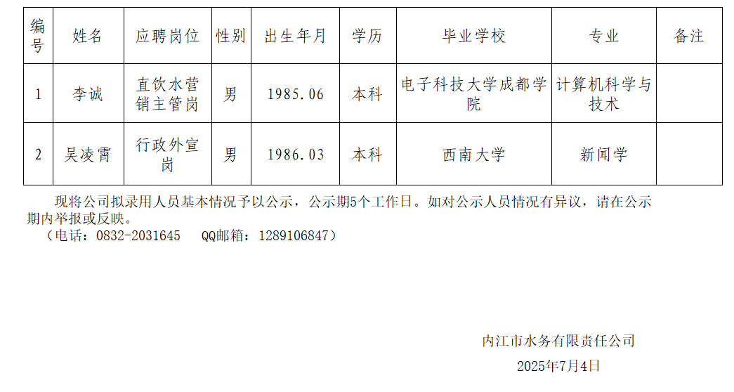 禁漫 2025年7月拟招聘人员公示情况表