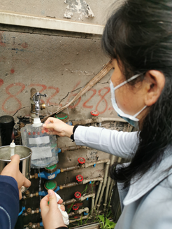 因受疫情影响,学校供水管网及相关设备长时间处于未使用状态,极易出现水质问题。为确保校园用水安全,4月7日至8日,水质检测中心对城区及乡镇的23个中小学校供水进行取样检测,并将数据反馈给生产技术部,为水厂制水适时调整消毒剂投加量提供科学指导。