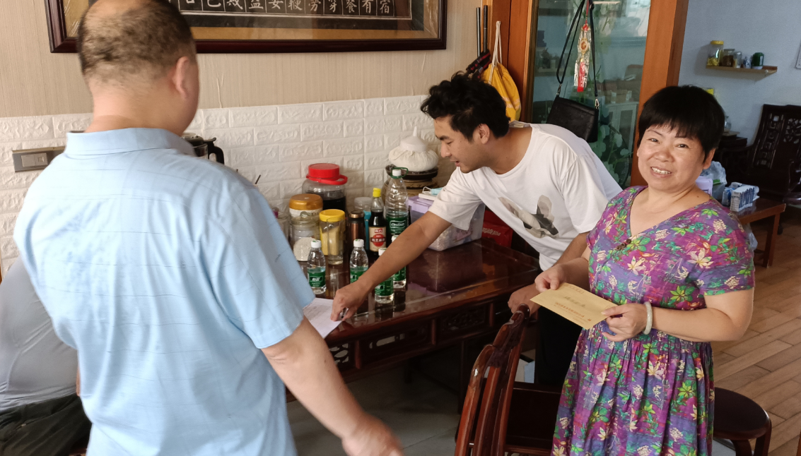 为深化党史学习教育,落实“我为群众办实事”活动,四支部结合“双报到”工作,开展“情系困难群众、端午送温暖”慰问困难党员活动。6月11日下午,第四党支部支部书记王敏、支委成员何涛、李军与吕祖庙社区书记深入社区,给社区两名身患疾病、家庭条件困难的老党员送去党的关怀和节日的问候。接受慰问的党员同志表示非常感谢党组织对他们的关心关爱,让他们在生活上得到帮助,在精神上获得了温暖。