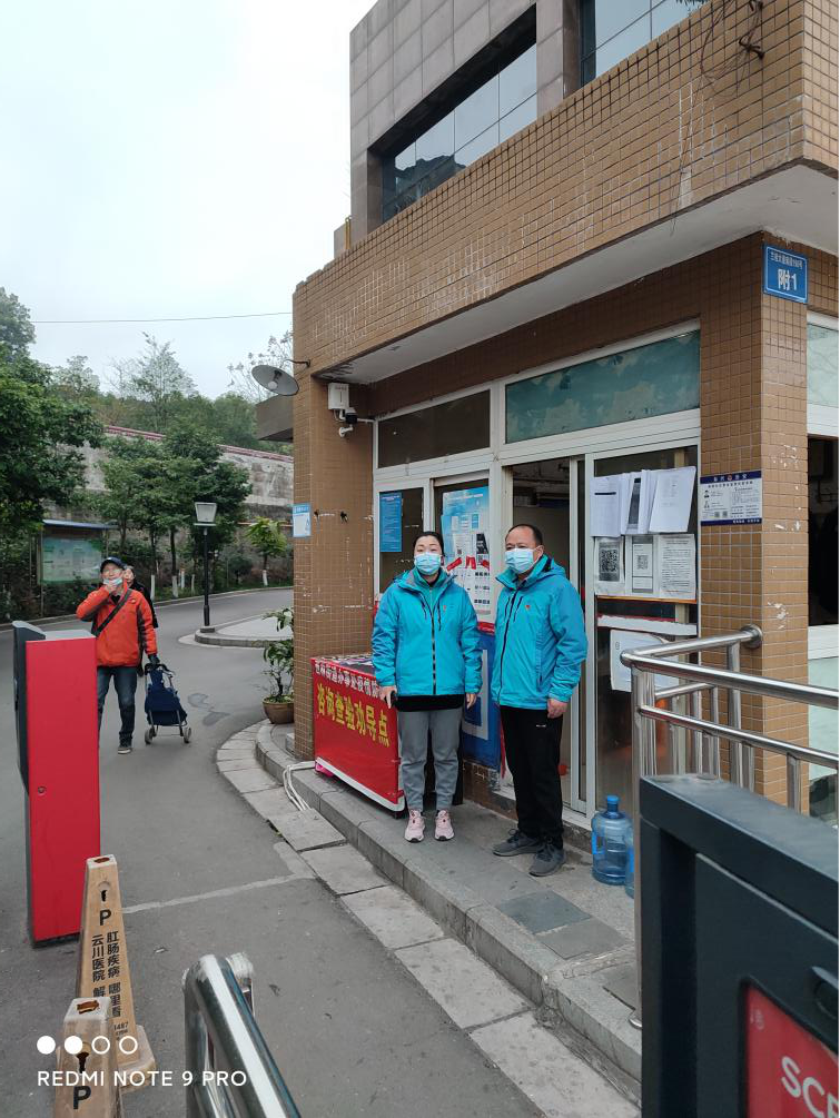 1月18日,禁漫 第六党支部联系内江师院社区,组织20名党员和群众配合社区对东兴区兰桂大道小区开展“疫情防控 志愿有我”防疫值守。