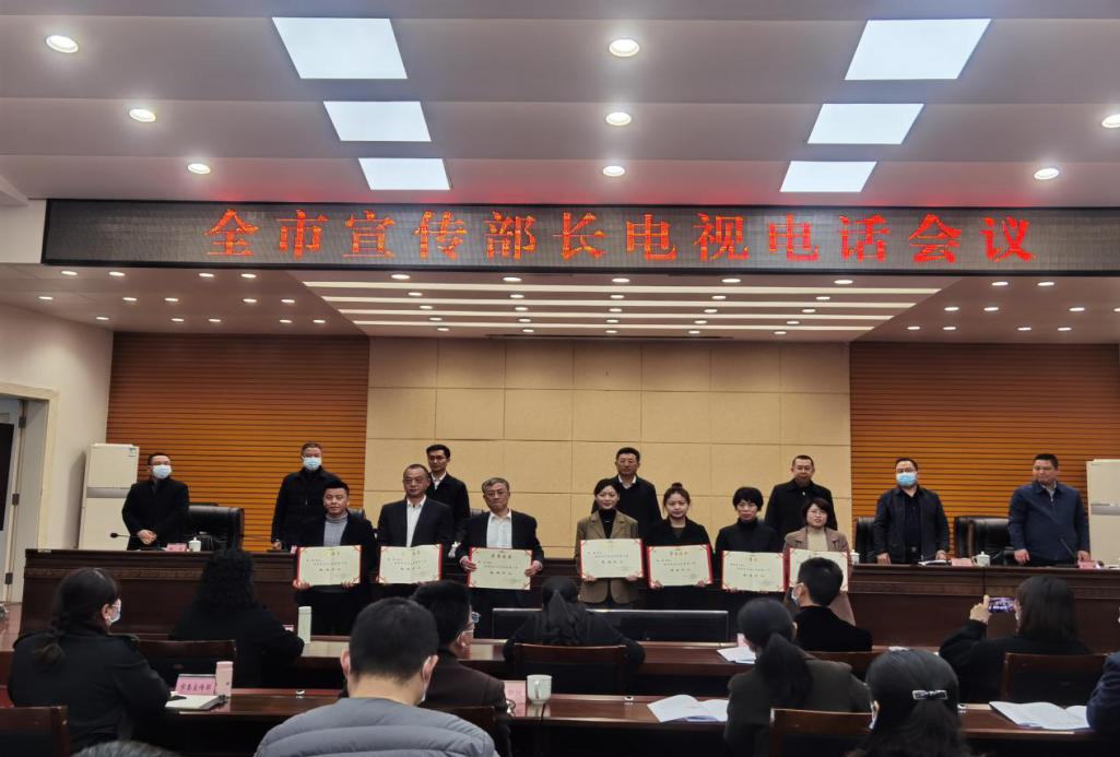 3月3日上午,全市宣传部长会议在市政府4楼4会议室召开。会上,表彰了全市宣传思想工作先进单位和先进个人,我司六支部书记、二水厂经理陈刚作为先进个人代表上台接受颁奖。