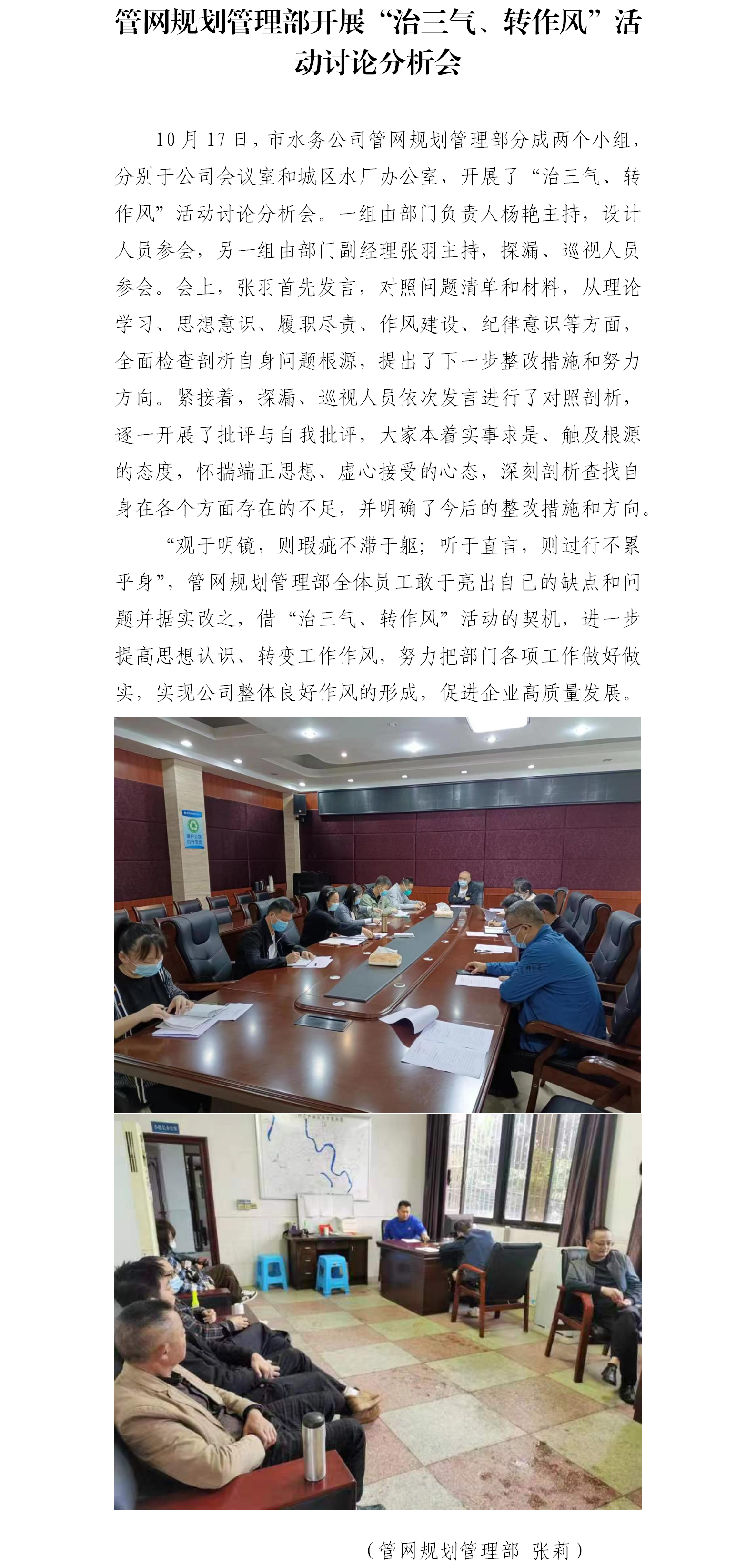 管网规划管理部开展“治三气、转作风”活动讨论分析会