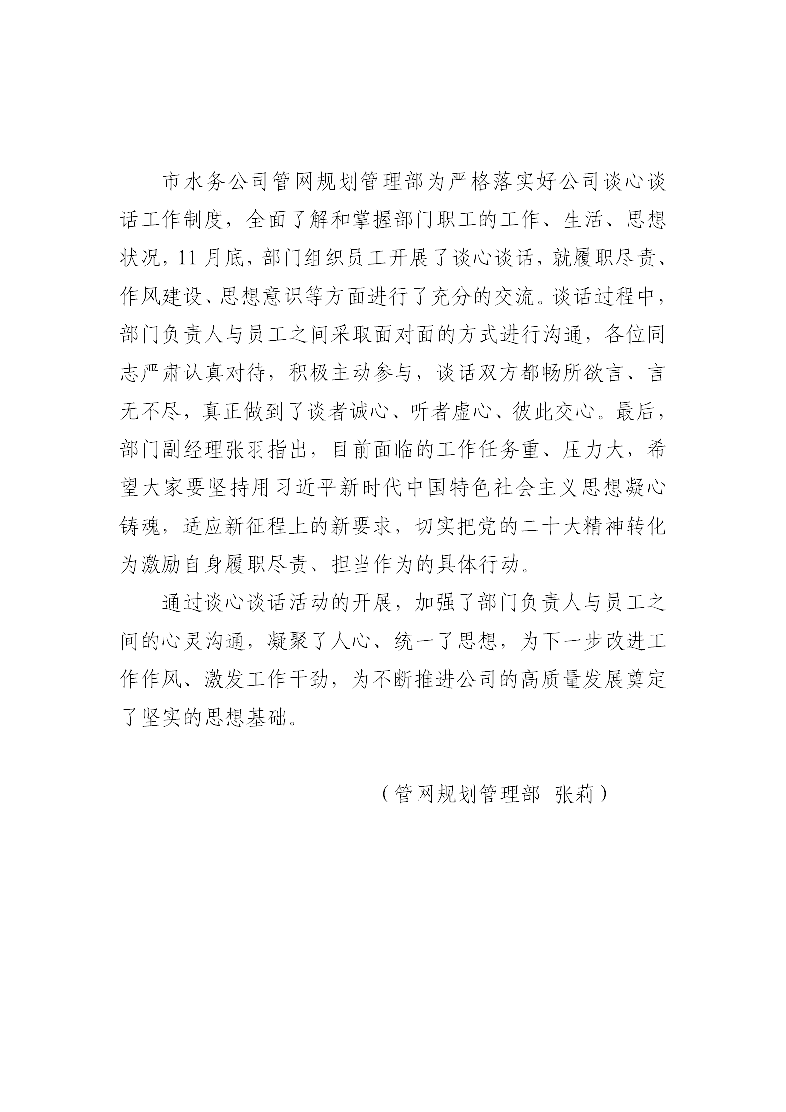 管网规划管理部开展谈心谈话活动