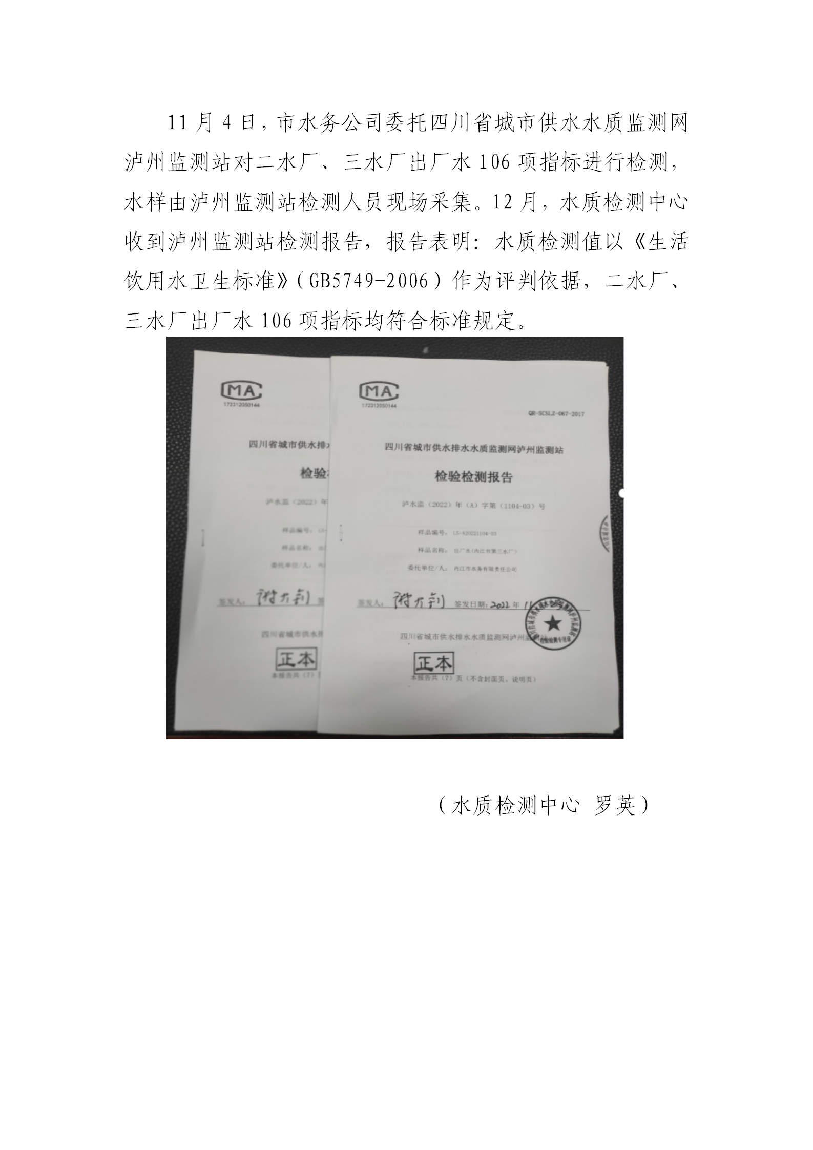 内江市卫健委水质公告
