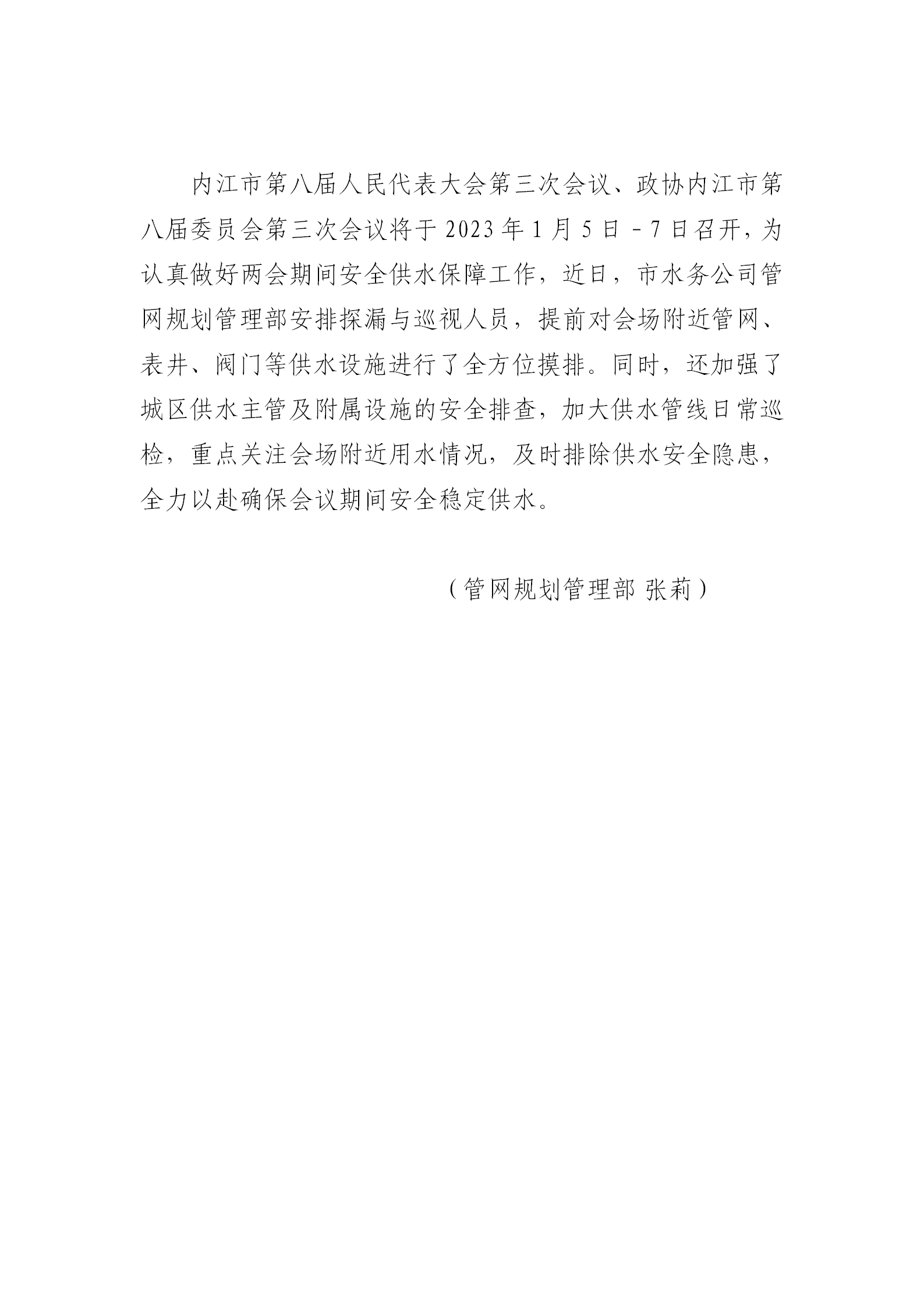 安全稳定供水 两会顺利召开