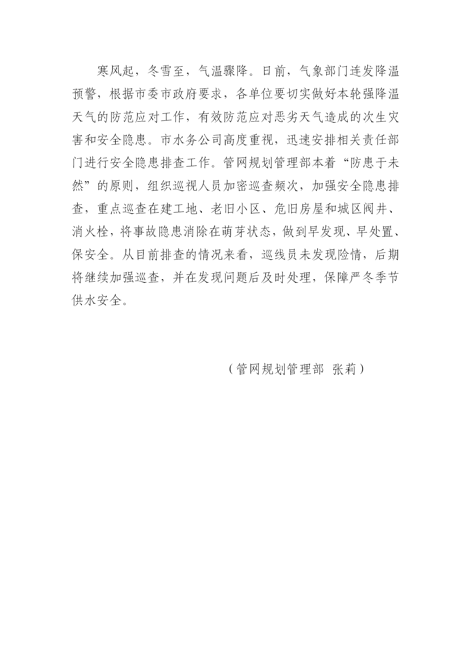 寒潮来临 保供水安全