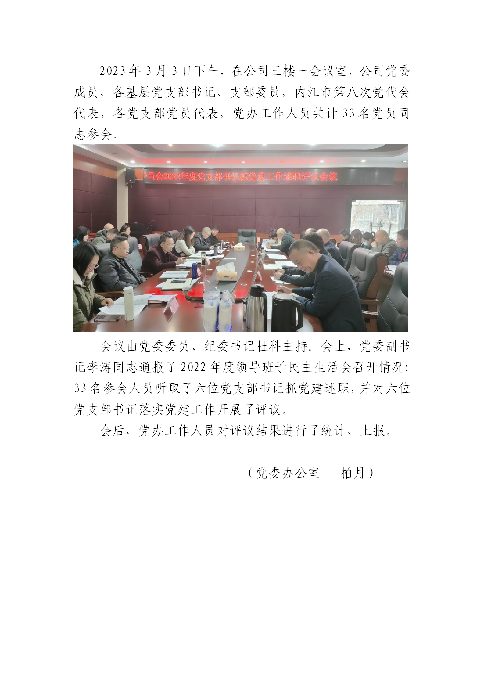 公司党委组织召开2022年度党支部书记抓党建工作述职评议会议