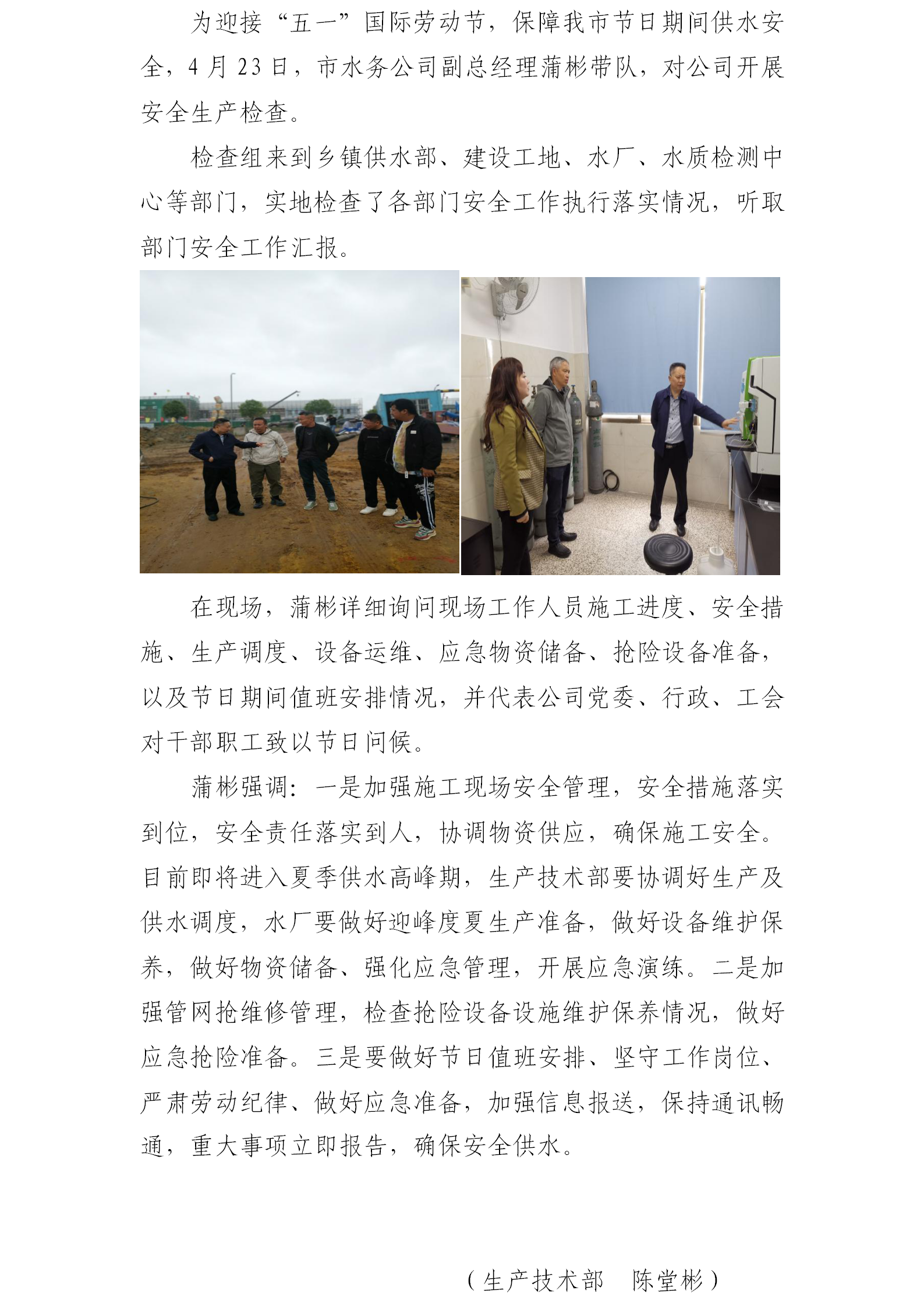 公司开展“五一”节前安全生产检查