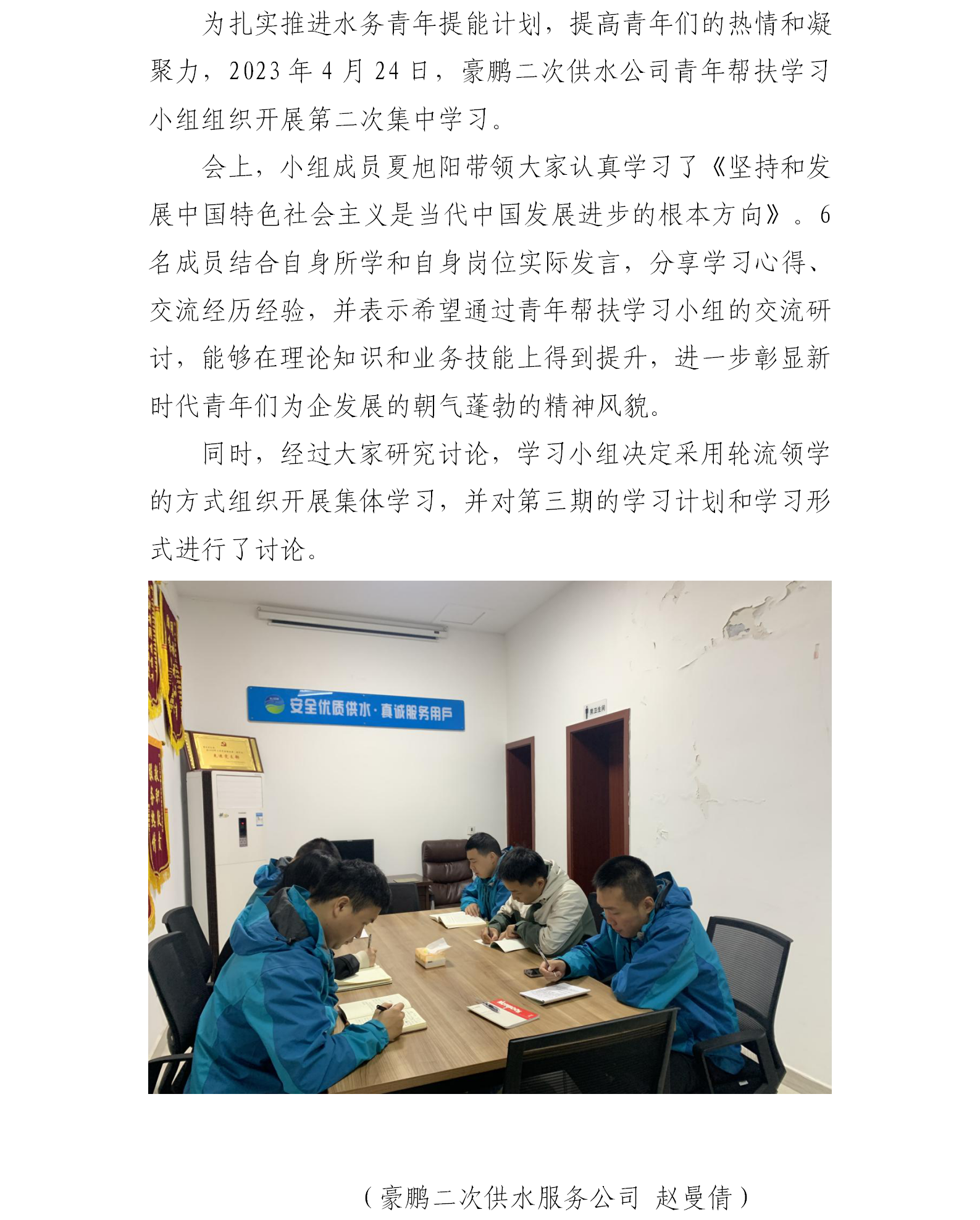 豪鹏二次供水公司青年帮扶学习小组开展第二次集中学习