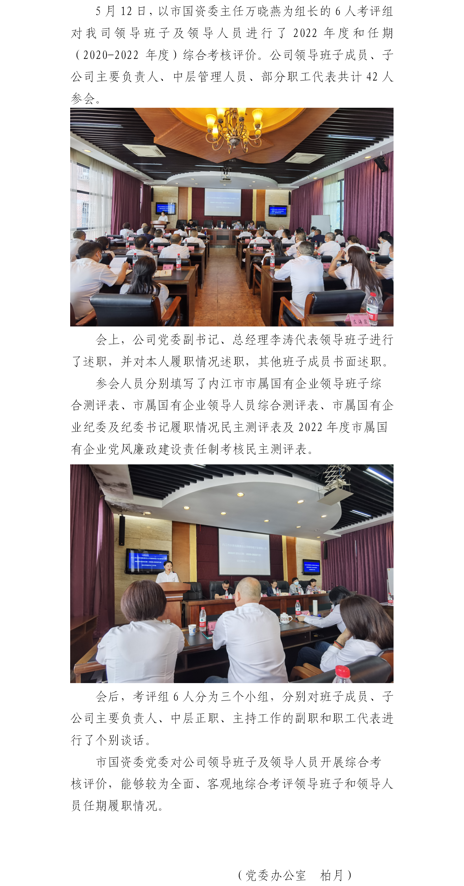 市国资委党委对公司领导班子及领导人员开展2022年度和任期综合考核评价