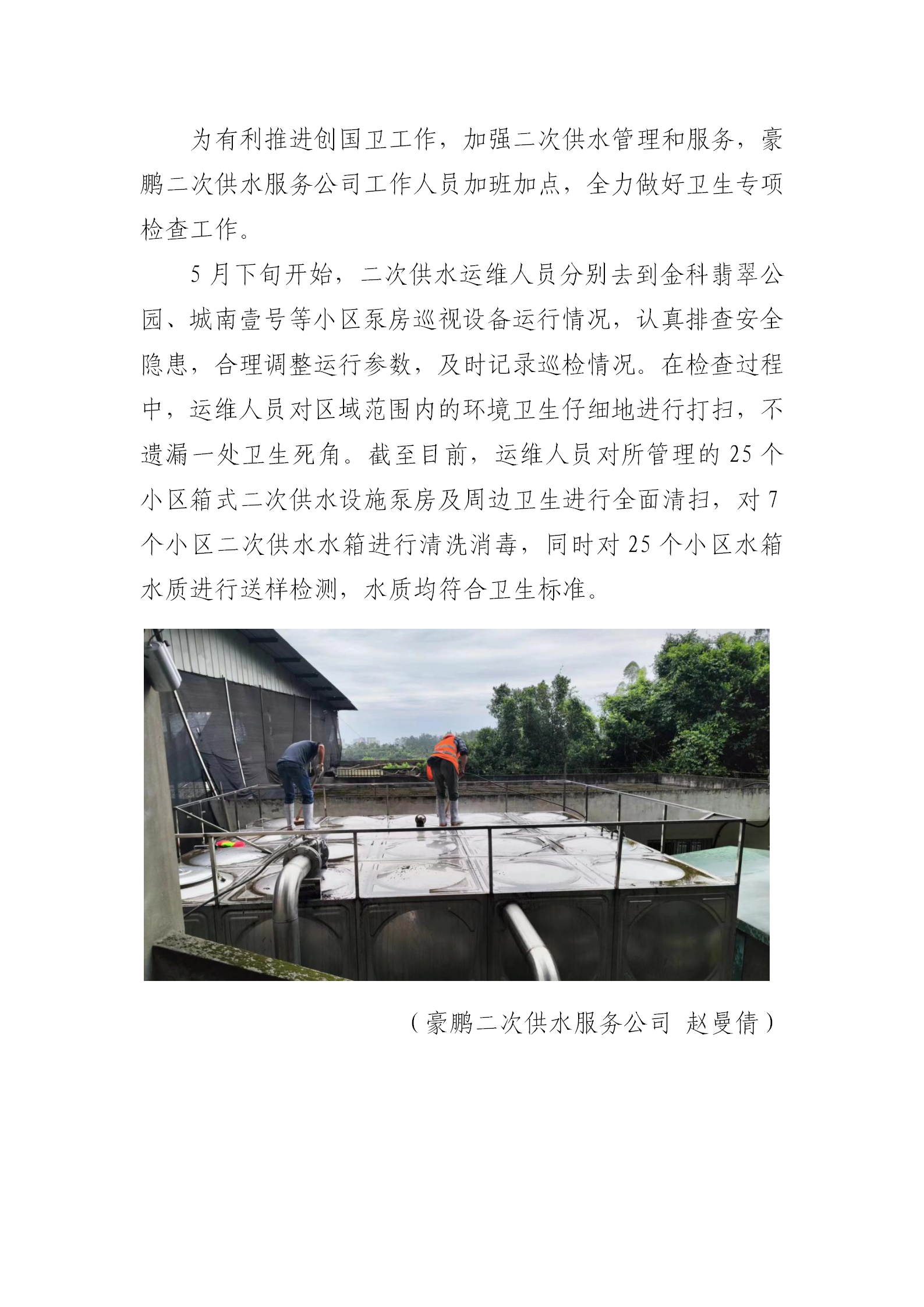 豪鹏二次供水服务公司开展供水泵房卫生专项检查工作