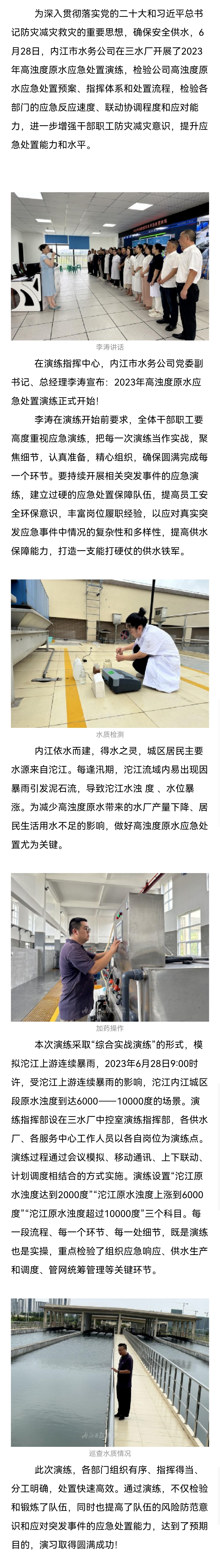 内江禁漫 开展2023年高浊度原水应急处置演练