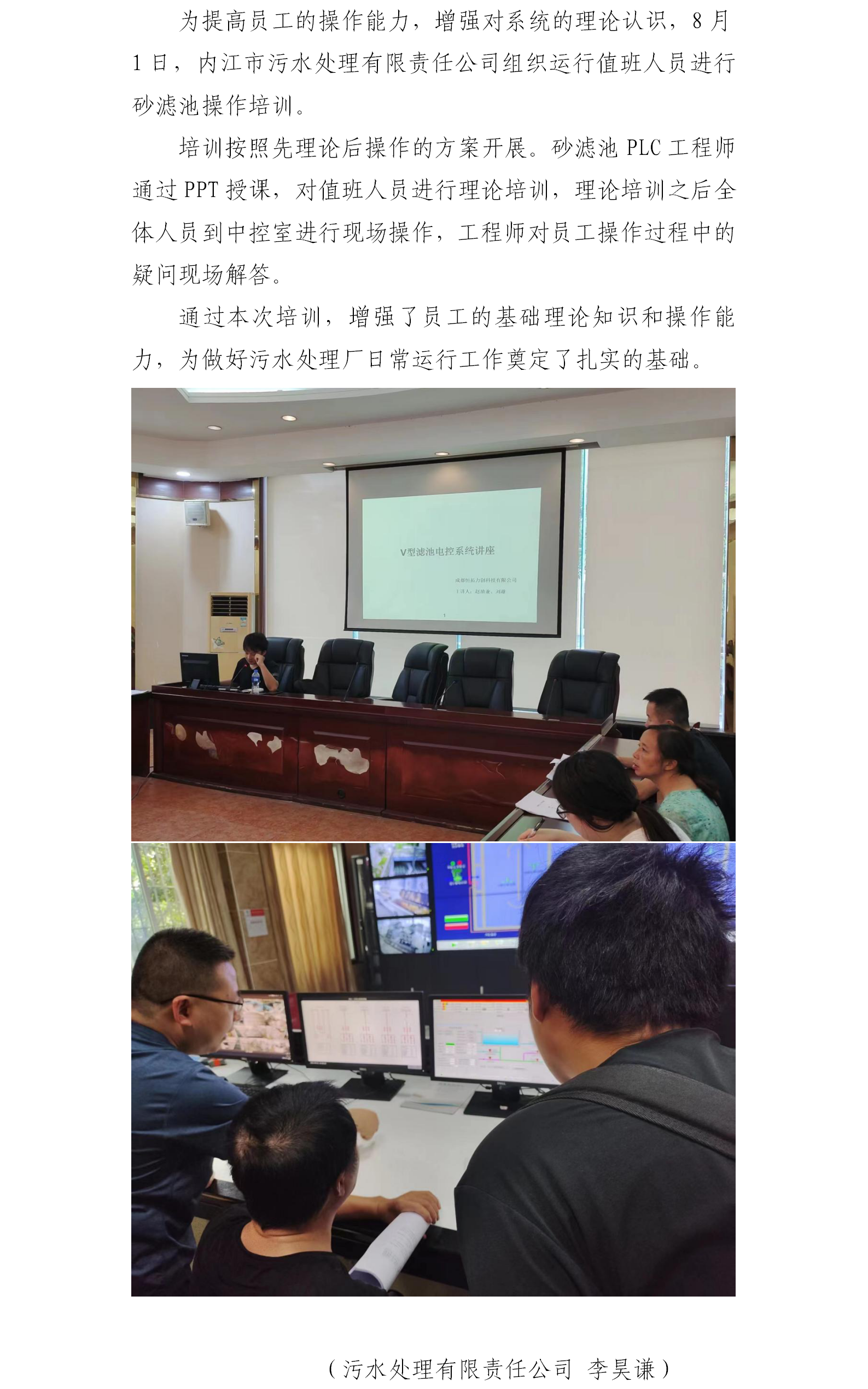 内江市污水处理有限责任公司开展砂滤池操作培训