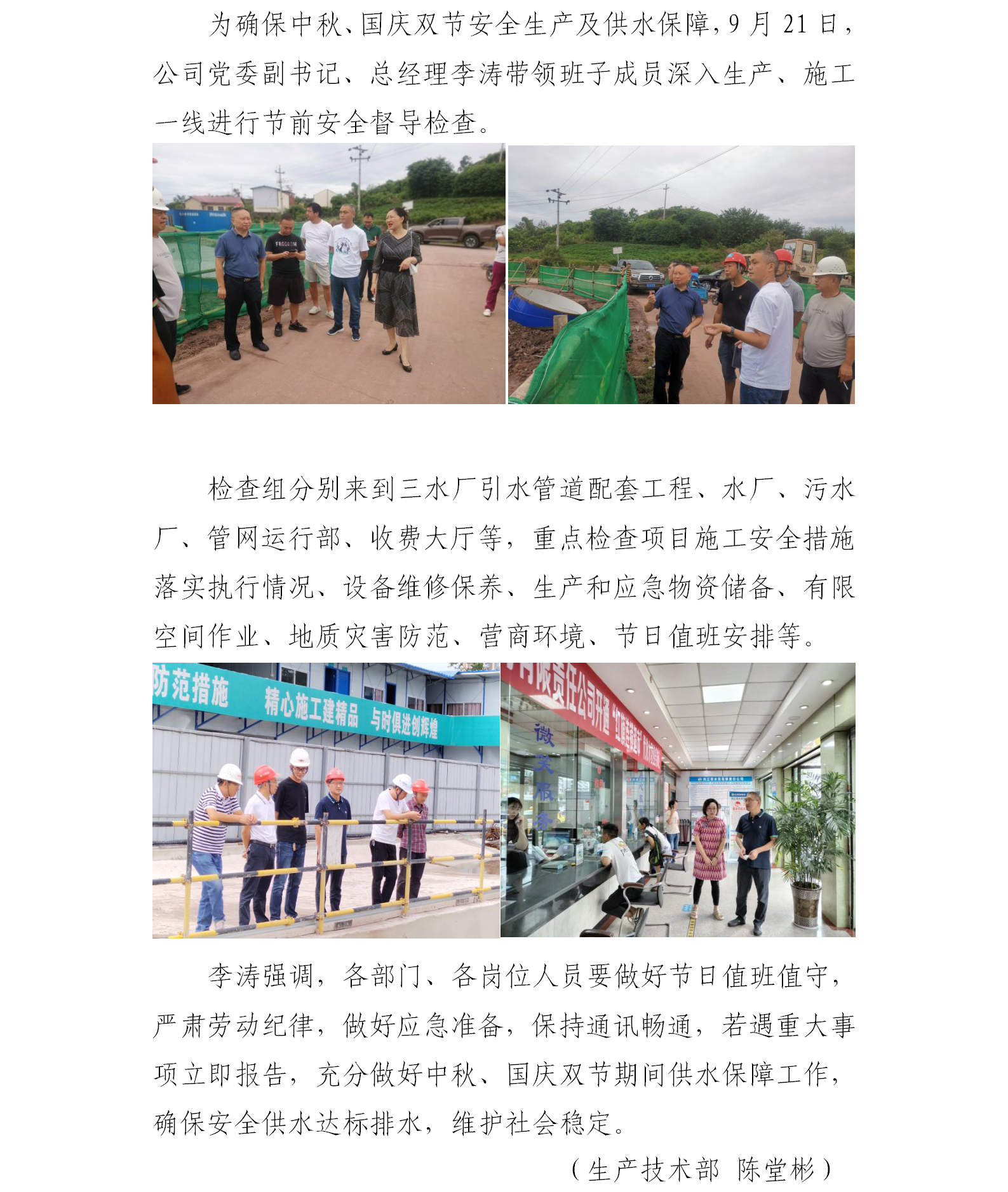 欢度国庆佳节 确保安全供水 ——公司组织中秋、国庆节安全检查