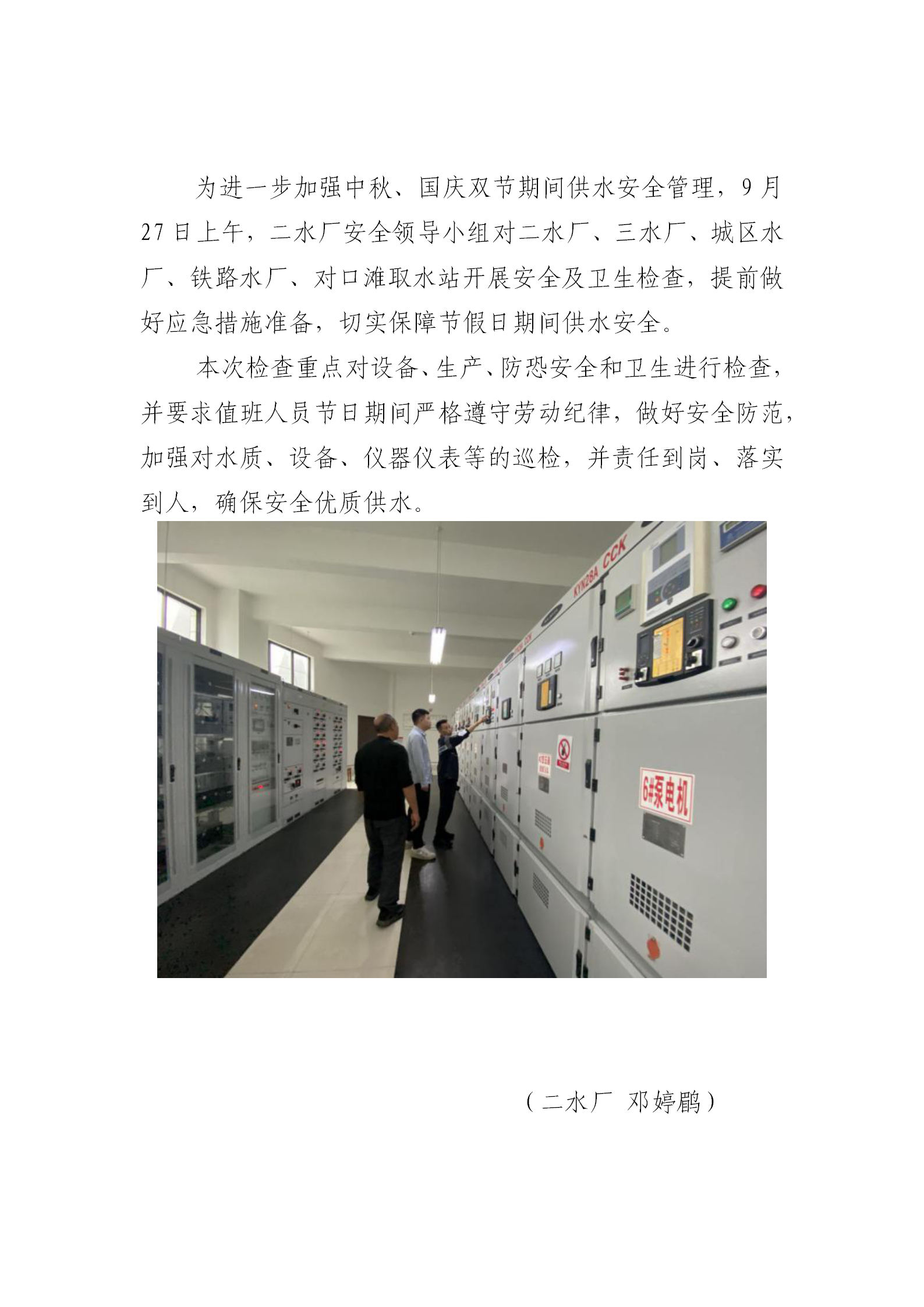 禁漫 二水厂开展节前安全生产检查
