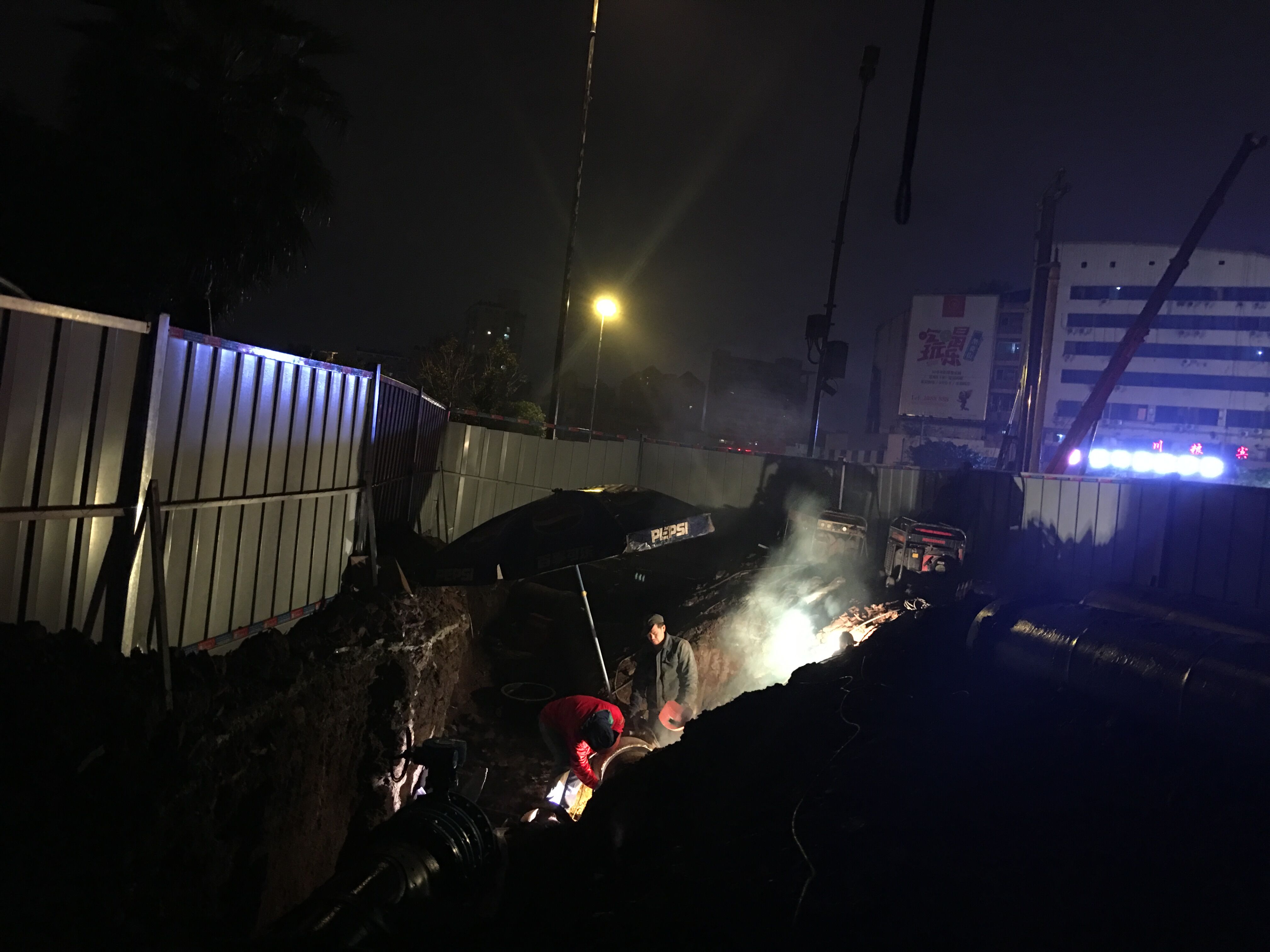 禁漫 为配合西林大桥南北下穿工程顺利进行,积极组织豪盛安装公司、工程管理部、管网运行部等相关部门进行西林大桥南北桥头下穿DN500给水管道改造。为保证附近居民白天的正常用水,我司特意把工期定在晚上和凌晨。2016年11月22日晚上11点多,阴雨绵绵,寒风刺骨,公司党委副书记、纪委书记、工会主席李涛带领党群工作部提上凉菜、面包和牛奶到施工现场慰问挑灯夜战、顶风作业的加班人员。他们不畏严寒、不知饥饿,只为不影响居民正常生活、保证城市安全供水埋头苦干的水务人,让我们不得不心生敬意。