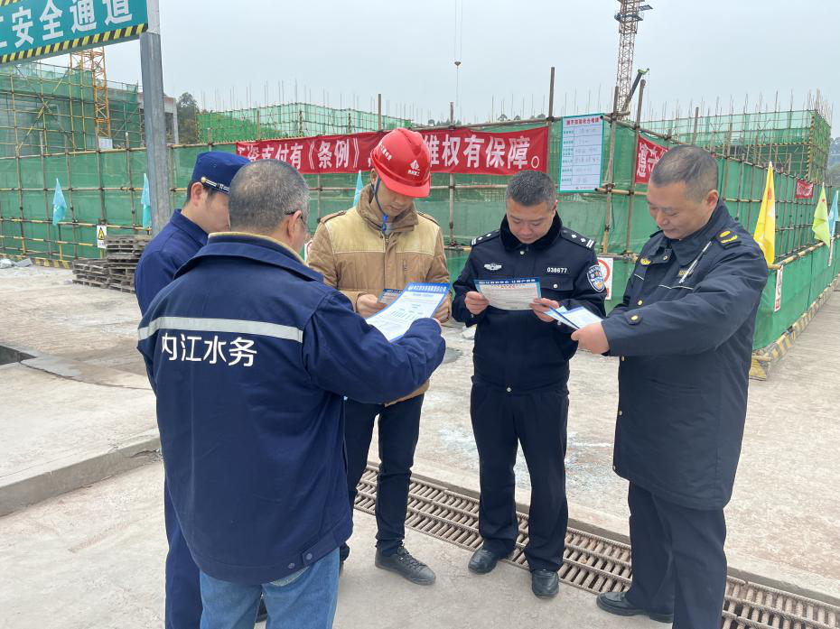 12月21日,内江水务有限责任公司与公安、城管、消防三个部门进行联合执法活动。
