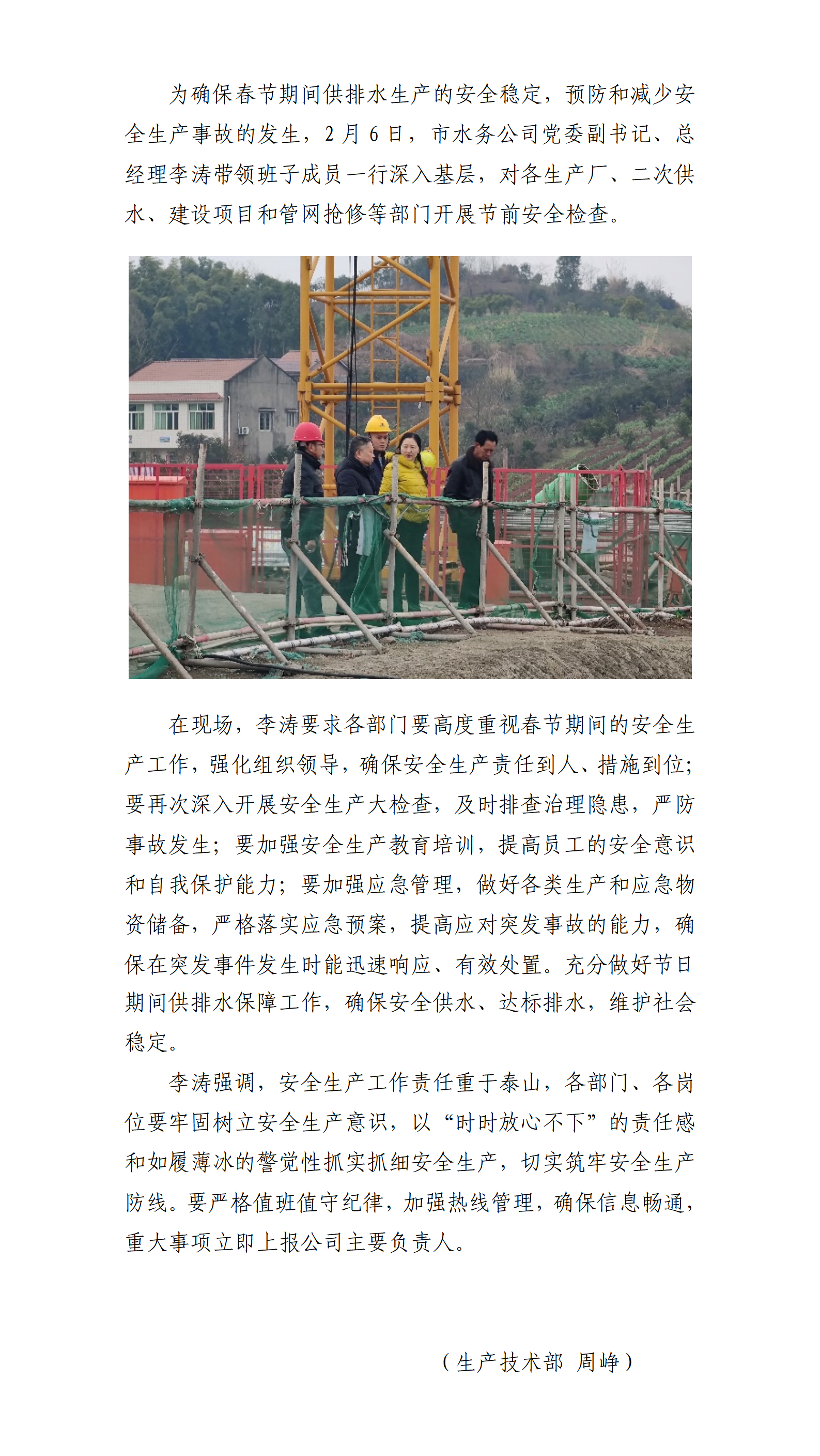 开展2024年春节前安全生产大检查 确保春节供排水生产安全