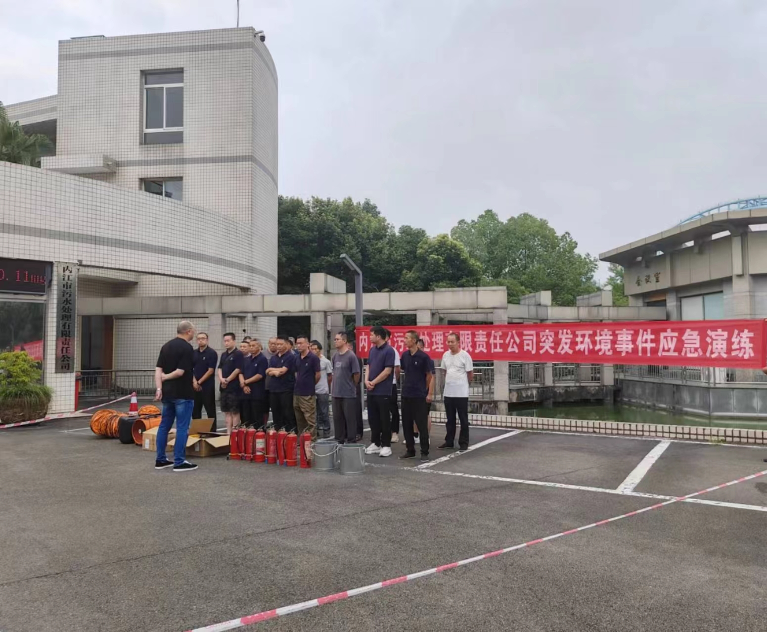 本次演练由污水公司经理黄勇担任总指挥,相关岗位人员各司其职,按照应急救援预案内容有序进行。演练结束后,黄勇对此次演练情况进行了总结,并提醒大家在生产过程中要时刻紧绷安全绳、牢筑安全墙,确保安全生产、达标排水。
