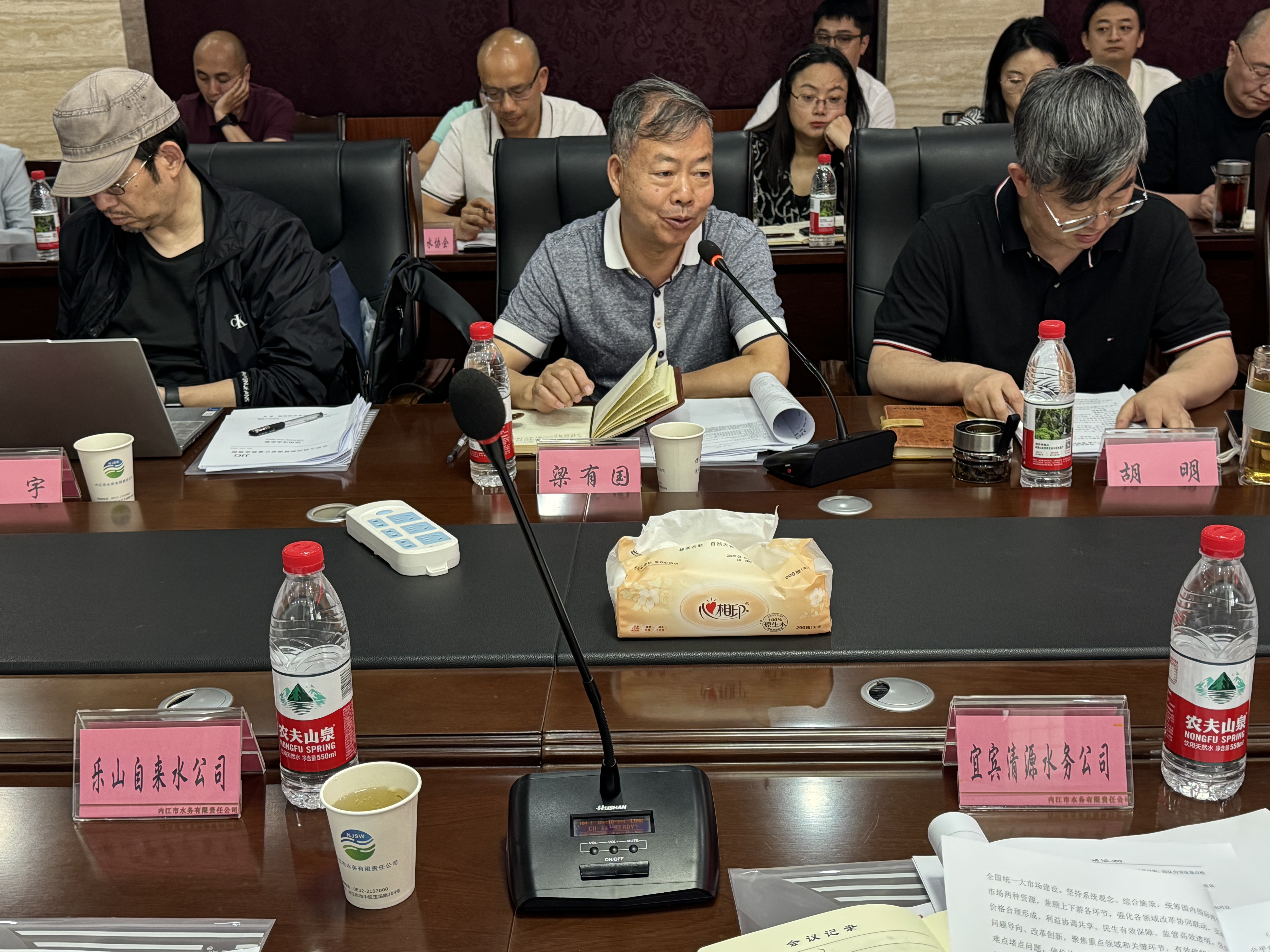 2025年5月8日,四川省城镇供排水协会供水运营管理专题研讨会在内江禁漫 三楼会议室圆满召开。会议由秘书长梁有国主持,副秘书长胡明,以及内江水务、自贡水务、乐山水务、眉山水务、宜宾清源水务、遂宁明星水务、泸州兴泸水务、广安爱众水务、海天水务等9家供排水企业负责人与成都理工大学的专家学者,共计20余人出席了会议。