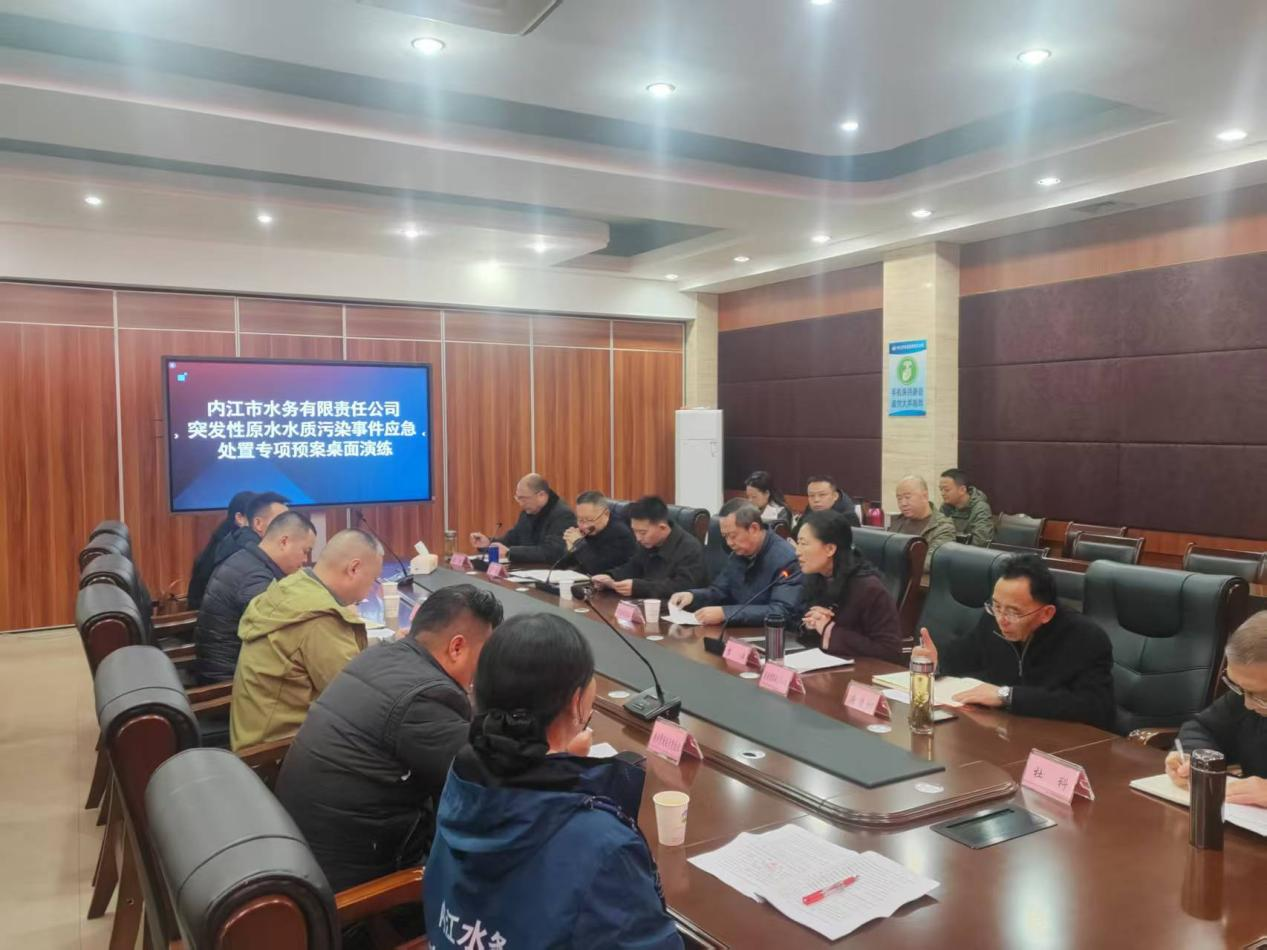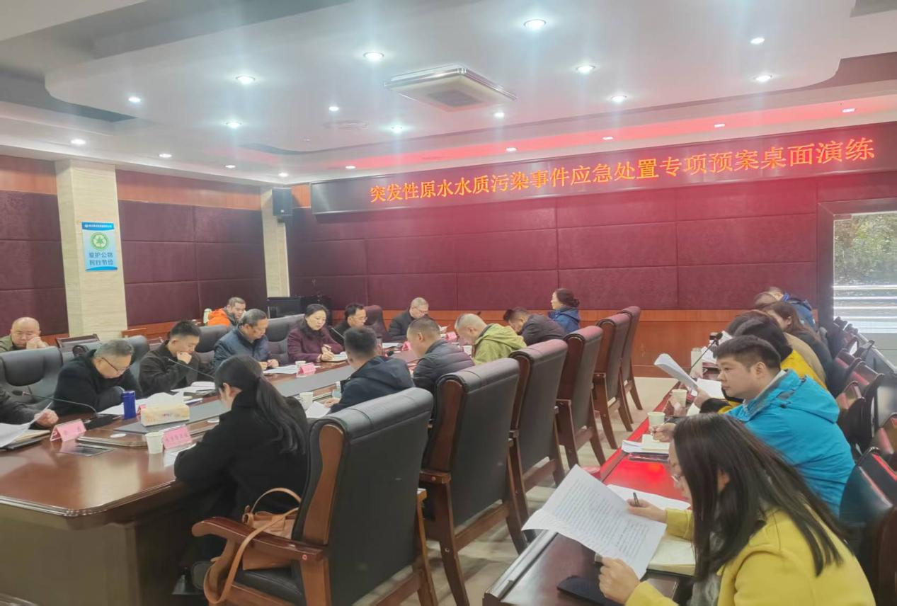 为提升公司应对突发性原水水质污染事件的处置能力,深刻吸取杭州余杭自来水异味事件的教训,11月18日,禁漫 开展了突发性原水水质污染应急处置桌面演练。市住建局四级调研员吴志刚、公用事业科科长陈亮亲临现场进行指导。禁漫 党委书记、董事长、总经理李涛等公司班子成员以及公司相关部门人员参与了此次演练。