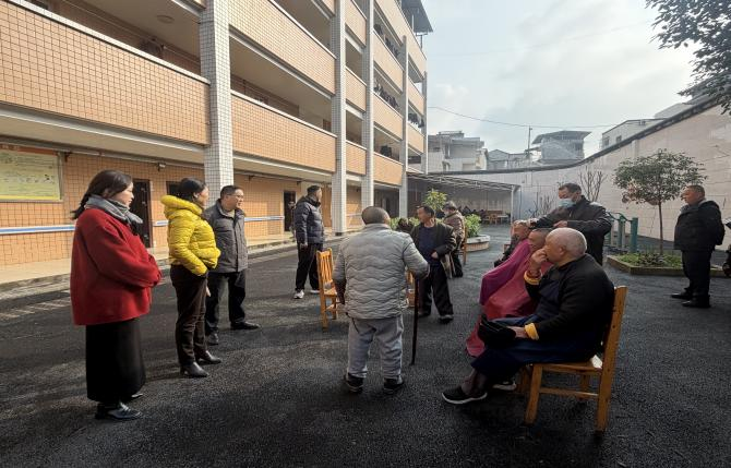 慰问组为老人们送上保温杯、保暖内衣、现制糕点等暖心物资,并向大家致以新春的美好祝福。杜舟一行实地查看了敬老院的后厨、老人居室等场所,详细了解了老人们的饮食起居、日常照料和安全管理等情况。