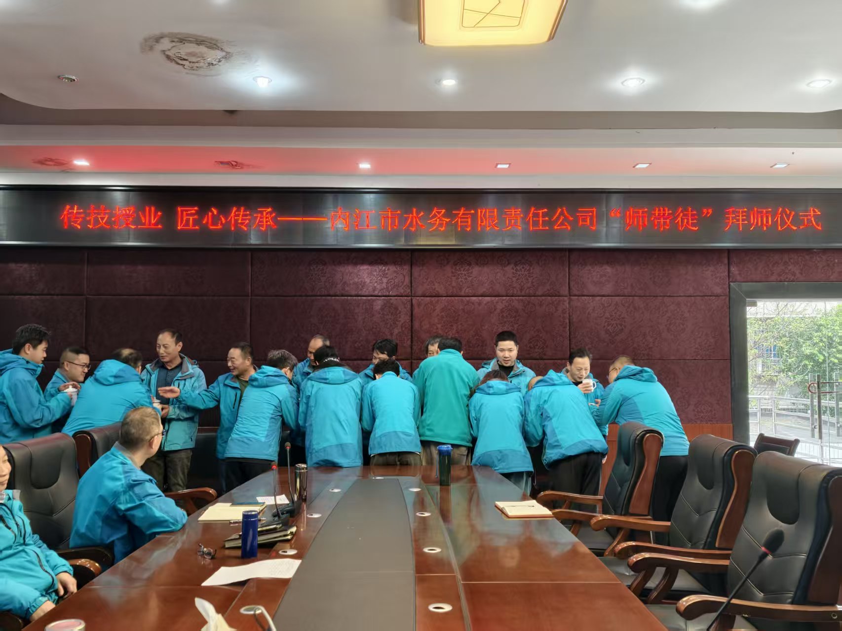 仪式现场,结对师徒分组就座,敬茶、签订师徒证书和《师带徒培养协议》等环节逐项推进。徒弟们躬身行礼、双手奉茶,师父们接过茶杯,亲手将师徒证书和《师带徒培养协议》交到徒弟手中,也将沉甸甸的传承责任交到了青年一代手上。所有结对师徒现场签订协议,明确培养周期、成长目标与双方权责,在公司领导的见证下留下了极具纪念意义的时刻。