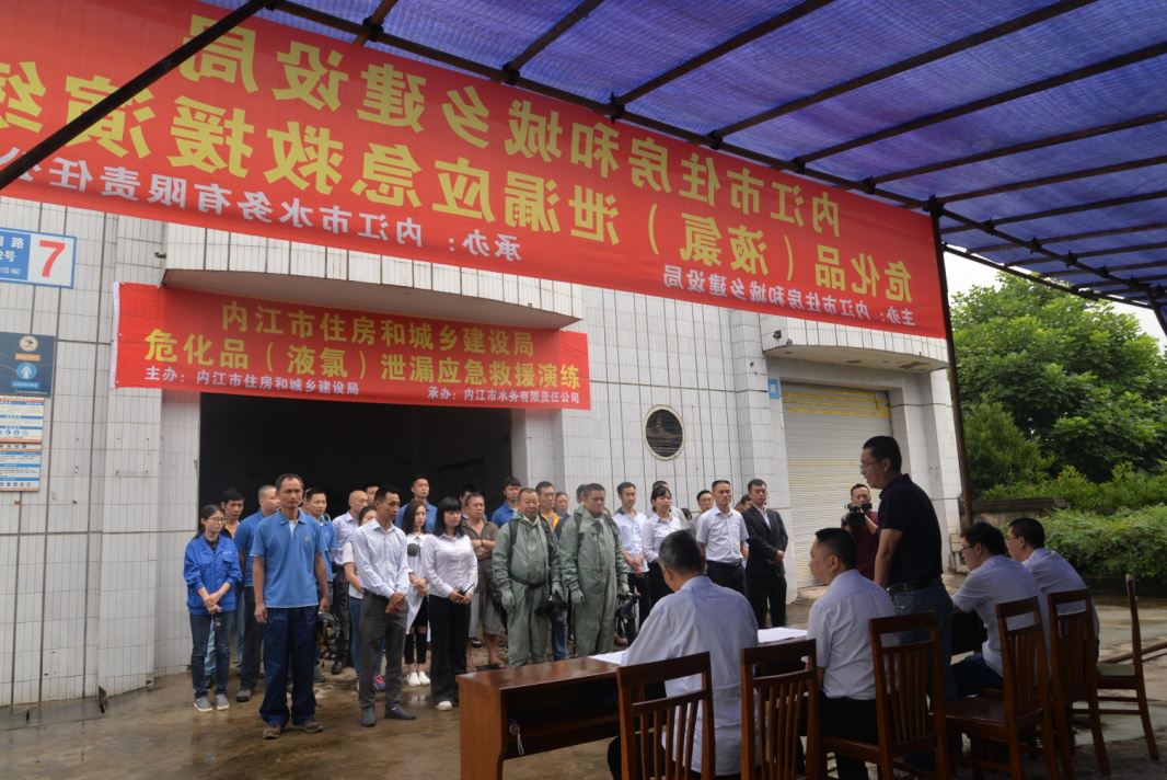 2017年6月16日上午,为做好危化品安全管理工作,保安全供水,公司在二水厂成功进行液氯泄漏应急救援演练。本次演练,由市住建局主办、公司承办,公司党委书记、董事长、总经理宁印福任总指挥,总工程师蒲彬任现场总指挥,生产技术部组织,二水厂具体实施,共计 50多人参与演练。