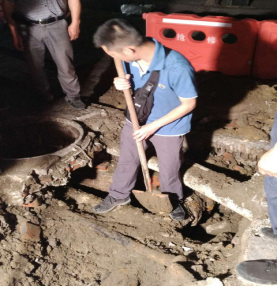 2017年6月8日晚,管网运行部接到群众电话,反映工商街大面积停水。经抢维修人员到现场排查,发现供水管道井内DN200铸铁管被污水严重锈蚀,导致供水主管破裂,造成了工商街沿线大面积停水。由于天气闷热,加上工商街又是商铺和居民密集地,管网运行部决定冒雨连夜抢修,同时派送水车给附近居民送水。经过7个多小时连续作业,在6月9日凌晨1:30分完成抢修,凌晨6:30分恢复供水,保证了周边用户正常用水。