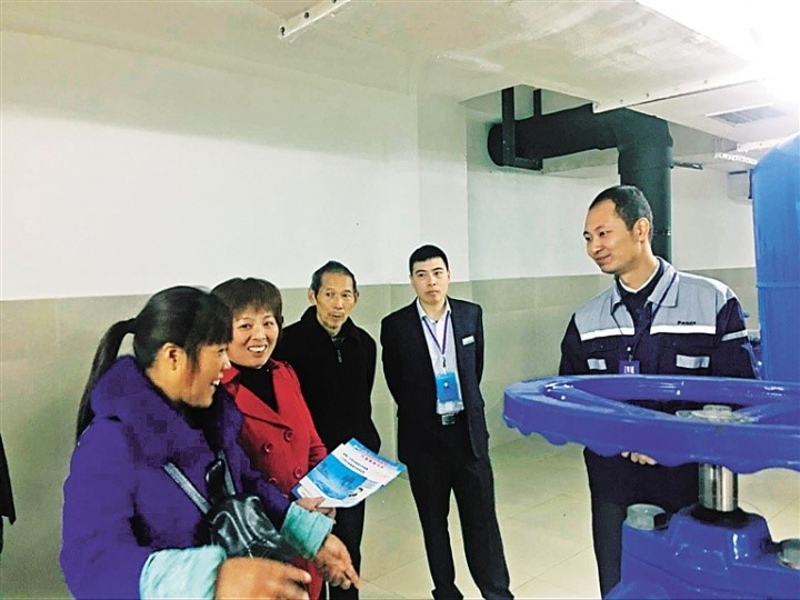二次供水是什么?对居民用水有什么影响?平时要如何维护?如何缴纳二次供水服务费?活动过程中,二次供水公司管理人员在水泵房内详细向居民介绍二次供水设施的基本构造和原理,并耐心解答用户提出的问题。