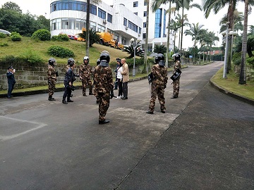 为加强安全生产管理,提高员工反恐怖袭击事件应急处置能力,9月公司二水厂成立反恐怖安全领导小组,加强厂内安全检查,每周至少召开一次安全例会。10月初成立反恐怖应急机动分队,并编制《二水厂反恐怖防范应急演练方案》,明确规定门卫、应急机动分队等的安全保障任务。