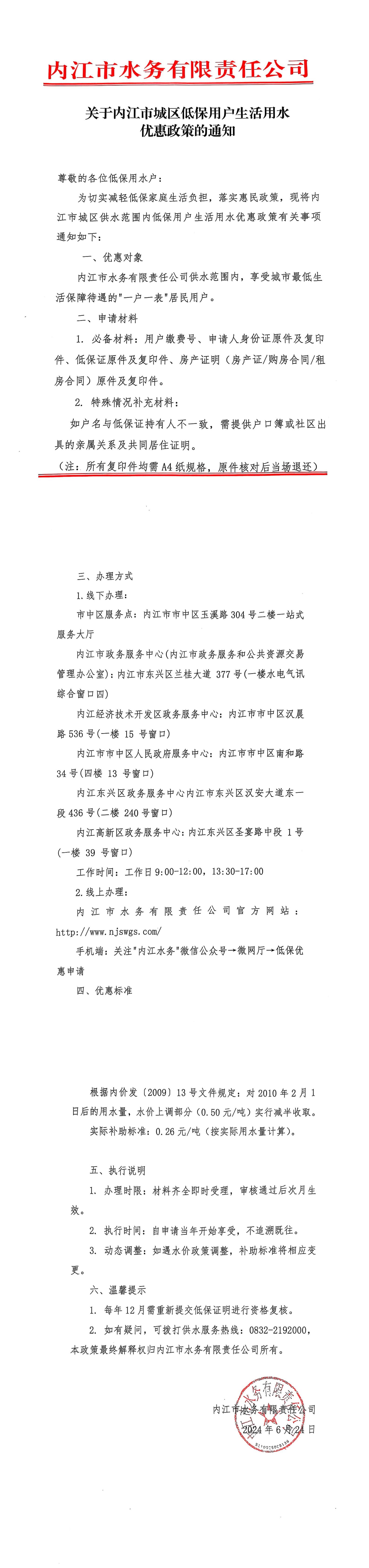 关于内江市城区低保用户生活用水优惠政策的通知