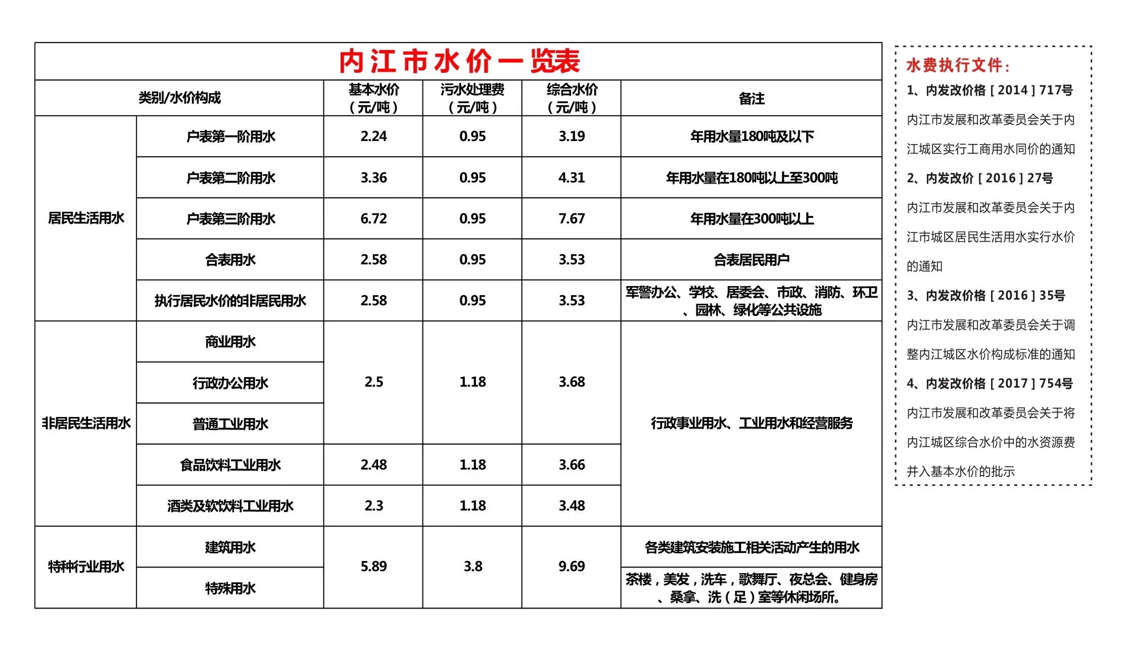 现行水价